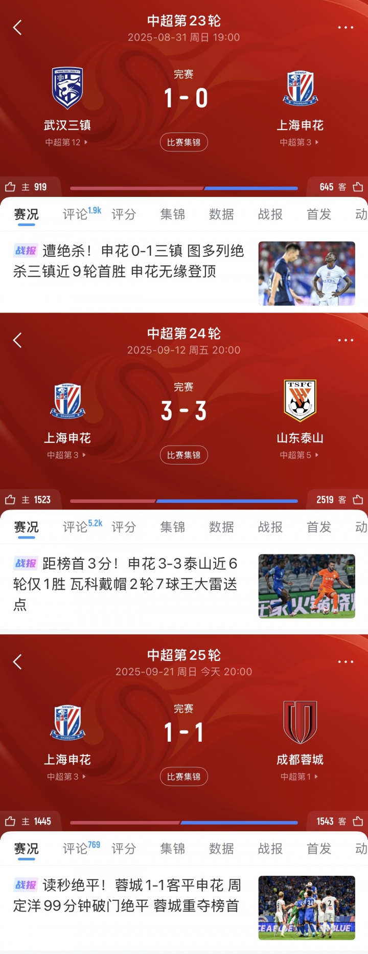 09月21日讯 本日中超焦点战,蓉城1-1绝平申花,值得一提的是,申花仍是贯穿三轮终末本事丢球,两场遭绝平,一场被绝杀。