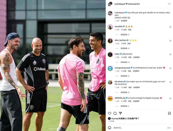 随后德保罗晒出了抵达迈阿密历练场后的多张相片,包括和梅西、苏亚雷斯、马斯切拉诺的同框照,随后内马尔点赞。