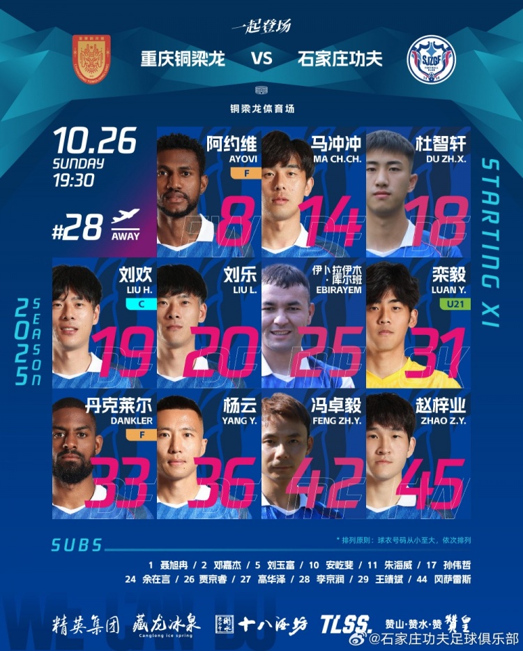 石家庄功夫客场挑战重庆铜梁龙首发名单!冈萨雷斯因伤无缘首发
