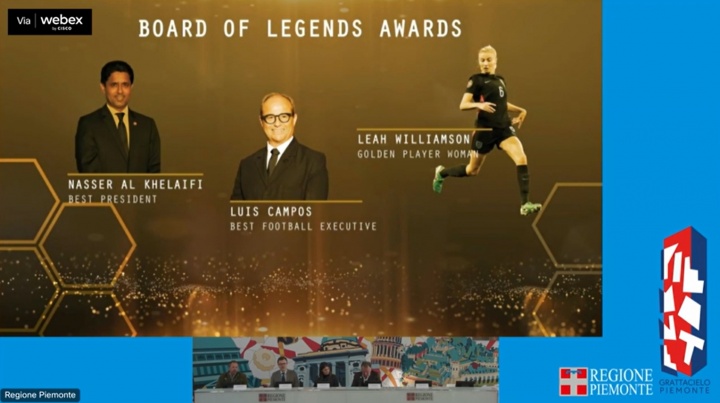 阿森纳女足后卫莉娅-威廉姆森被评为2025女足金球员奖,巴黎主席纳赛尔被评为最好主席,巴黎体育总监坎波斯被评为最好足球贬责者。