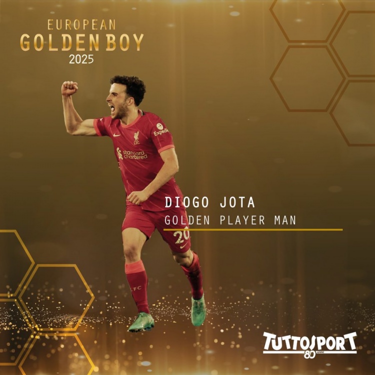 金童奖官方:利物浦前卫若塔被评为2025金球员奖