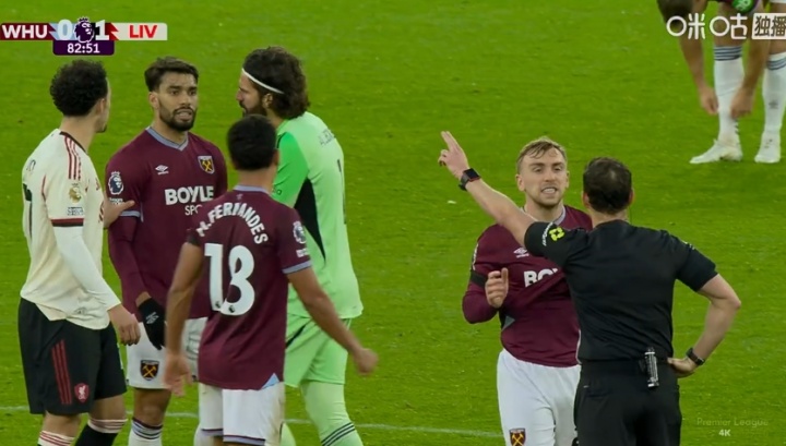 11月30日讯 英超第13轮,西汉姆联vs利物浦,帕奎塔不悦判罚连吃2黄被罚下。