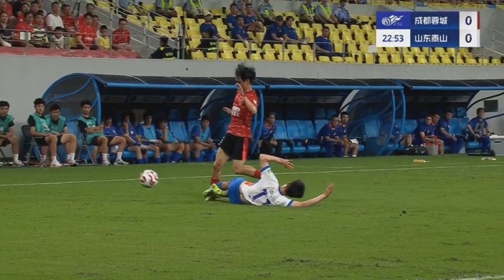 08月02日讯 中超第19轮,成齐蓉城vs山东泰山。比赛第22分钟,刘洋对杨明洋铲球犯规,被出示黄牌。