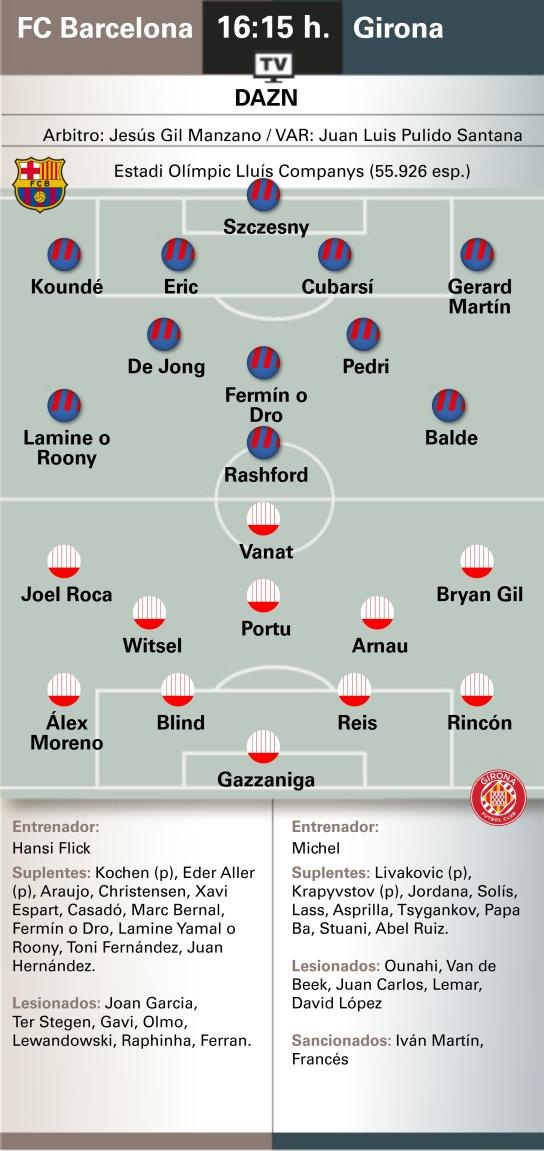 世体量度巴萨vs赫罗纳首发:拉什福德出任中锋,巴尔德左边锋