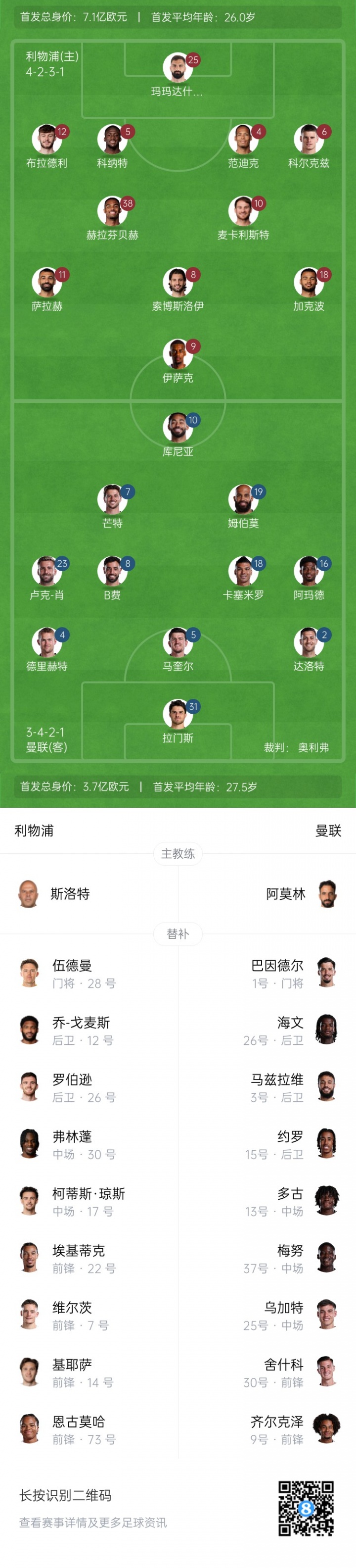 10月19日讯 利物浦vs曼联首发出炉,维尔茨又一次坐在了替补席上,他如故流通2场英超替补。