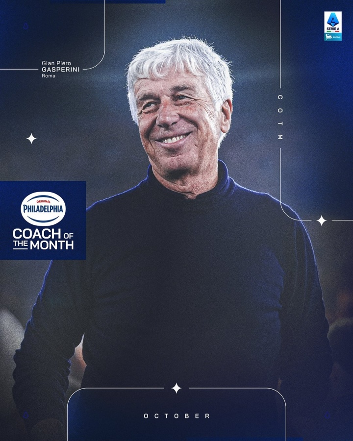 意甲联赛官方布告,加斯佩里尼荣膺联赛10月最好素质,该奖项的奖杯将在本周日罗马对阵乌迪内斯的赛前颁发给他。