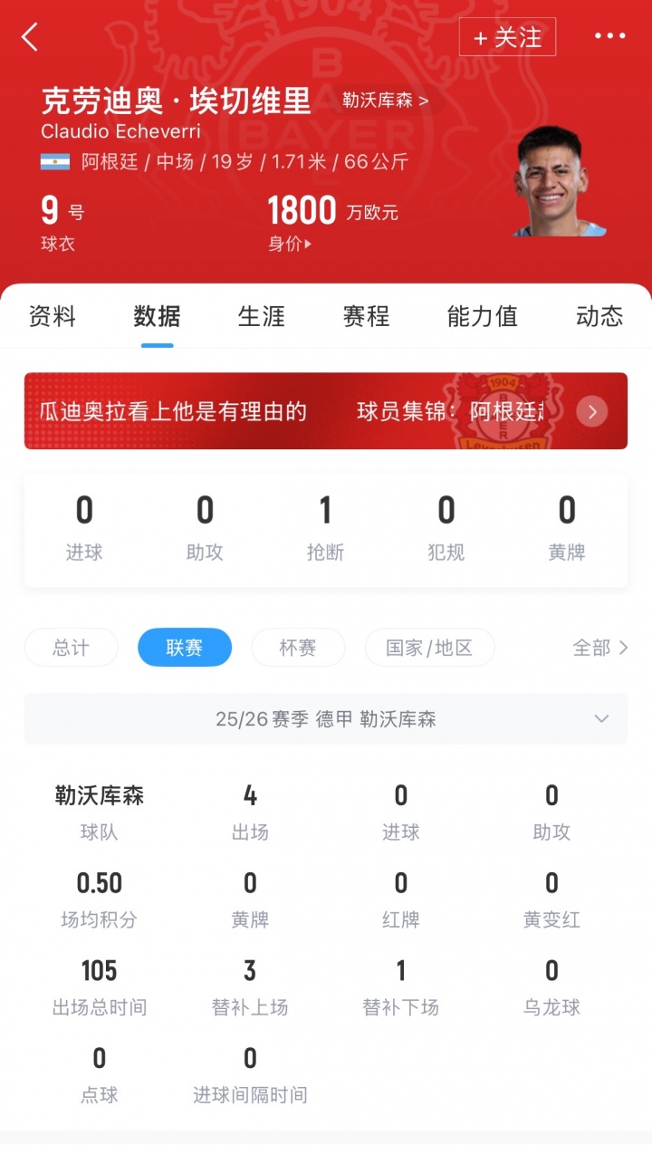 19岁的埃切维里在今夏租赁加盟药厂后,联赛仅出场4次,总技艺仅105分钟,莫得获得进球或者助攻。