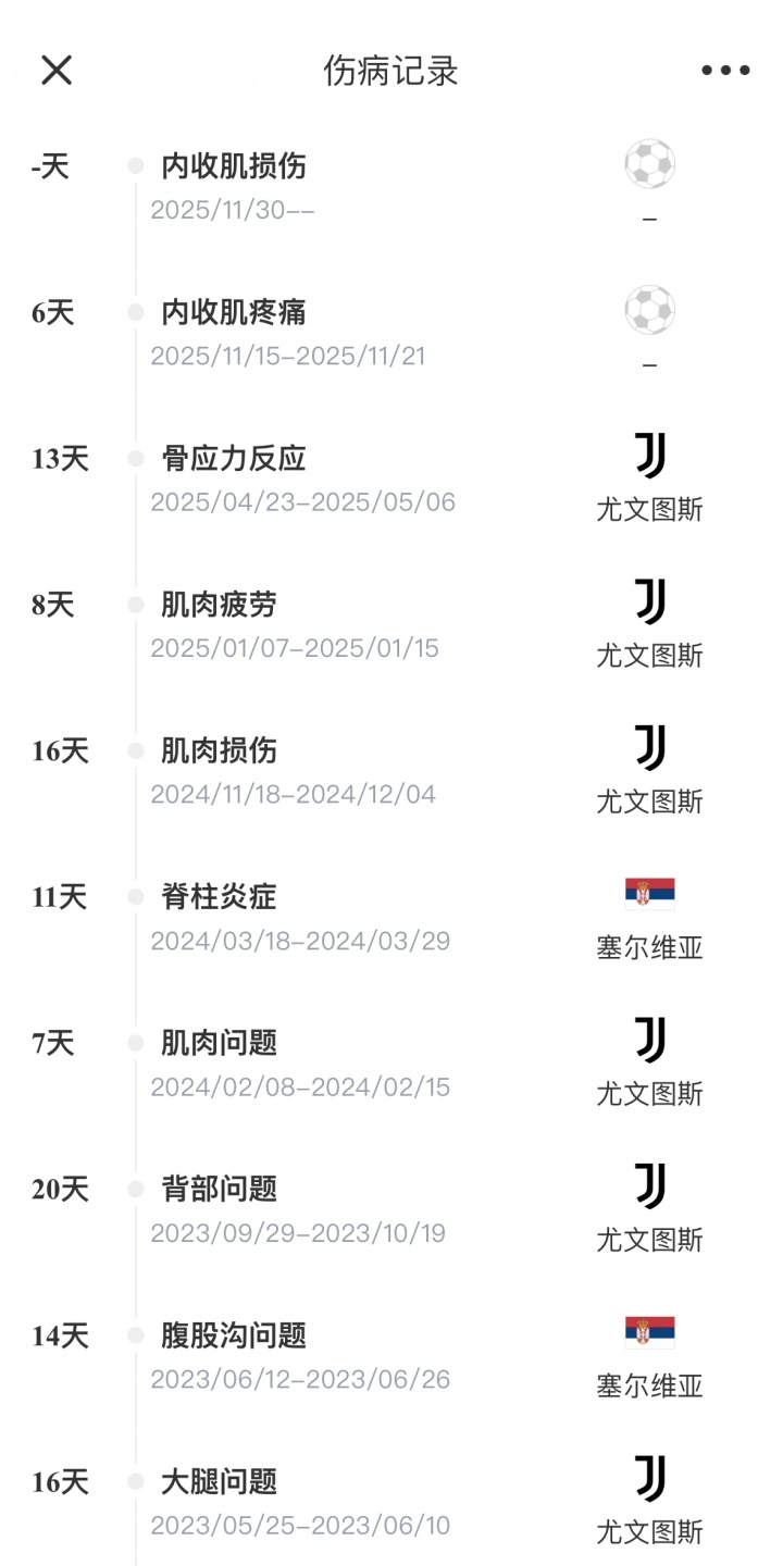 12月01日讯 尤文臣方公布弗拉霍维奇伤情,他的左侧长收肌肌肉肌腱一语气处存在高等别挫伤。迪马济奥暗示,弗拉霍维奇将至少缺席2-3个月,要是手术,缺席时期可能更久。