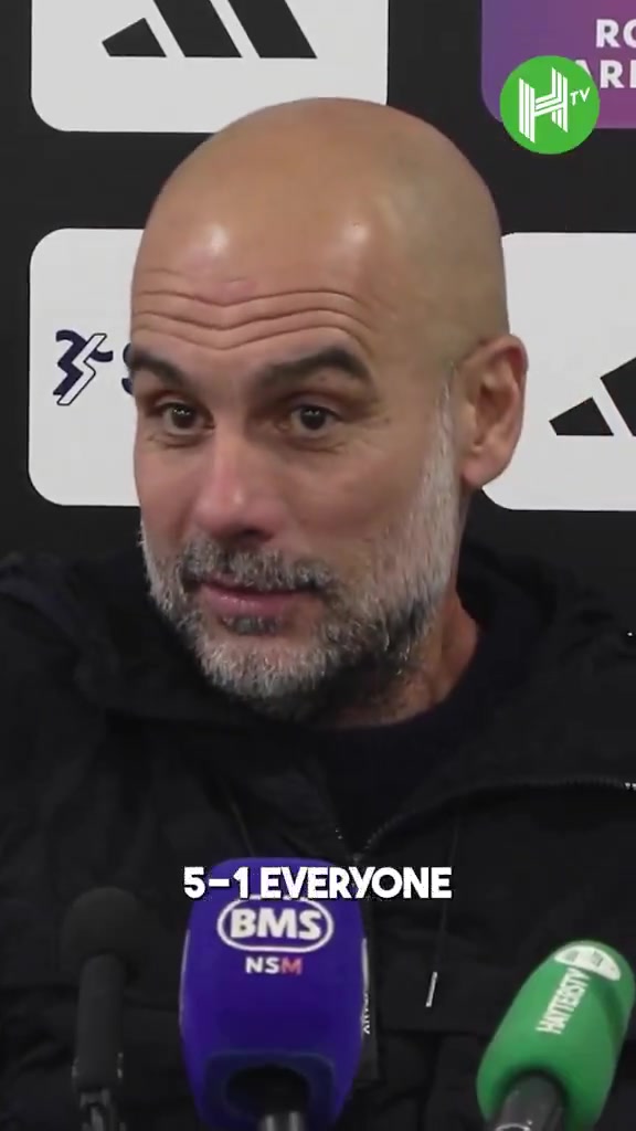 12月03日讯 英超第14轮,曼城客场5-4打败富勒姆,曼城在5-1跨越后连丢3球,确凿痛失好局。赛后新闻发布会,瓜迪奥拉离开前跟记者们开起了打趣。