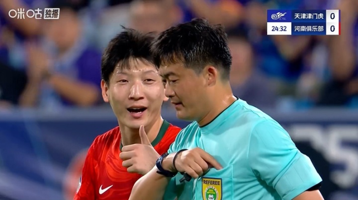 复刻“世林点赞”!河南两东谈主抗议染黄,卢永涛朝主裁判竖大拇指