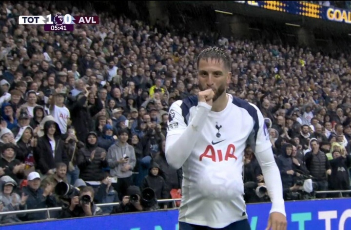 开场5分钟卓绝!帕利尼亚头球摆渡,本坦库尔破门!热刺1-0维拉!