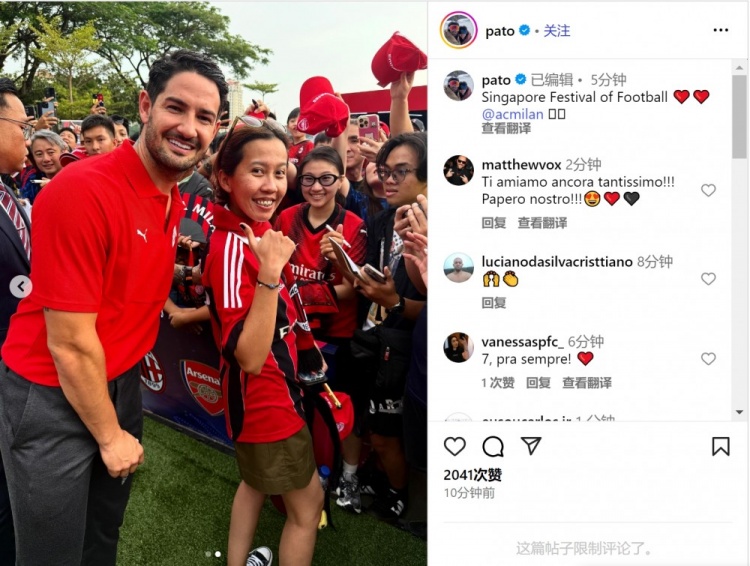 米兰名宿!帕托在新加坡干涉季前赛作为,社媒晒与球迷合照