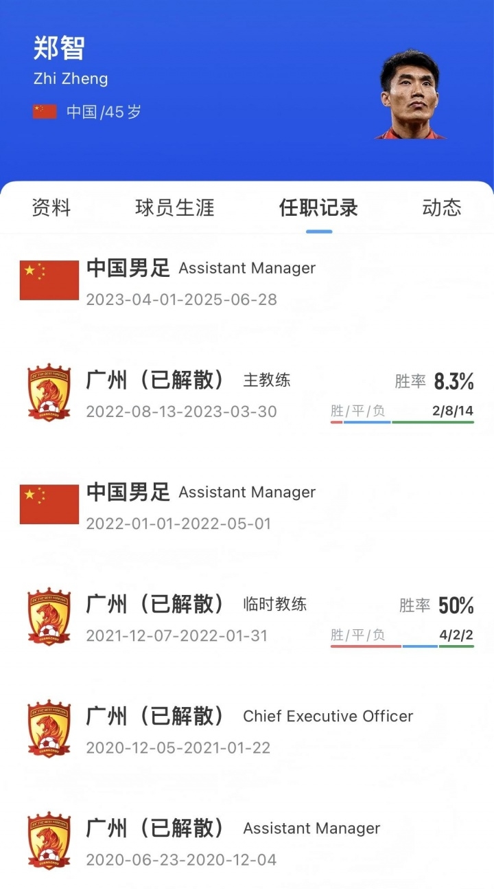 2021年12月7日,郑智出任广州队实行主素养兼球员。2022年1月,41岁的郑智出战广州队vs长春亚泰的中超比赛,这是他职业生活临了一次出场。2022年8月,郑智出任广州队主素养。 2023年2月27日,郑智出任国足助教 。跟着伊万离任,郑智也退放洋足助教团队。