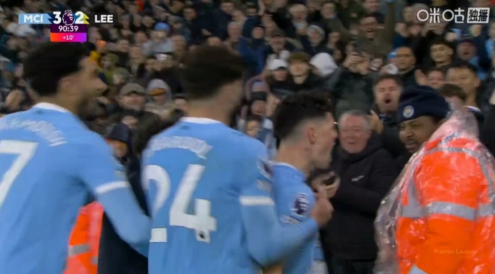 11月30日讯 曼城vs利兹联第91分钟,福登破门完成双响,比分变为曼城3-2!