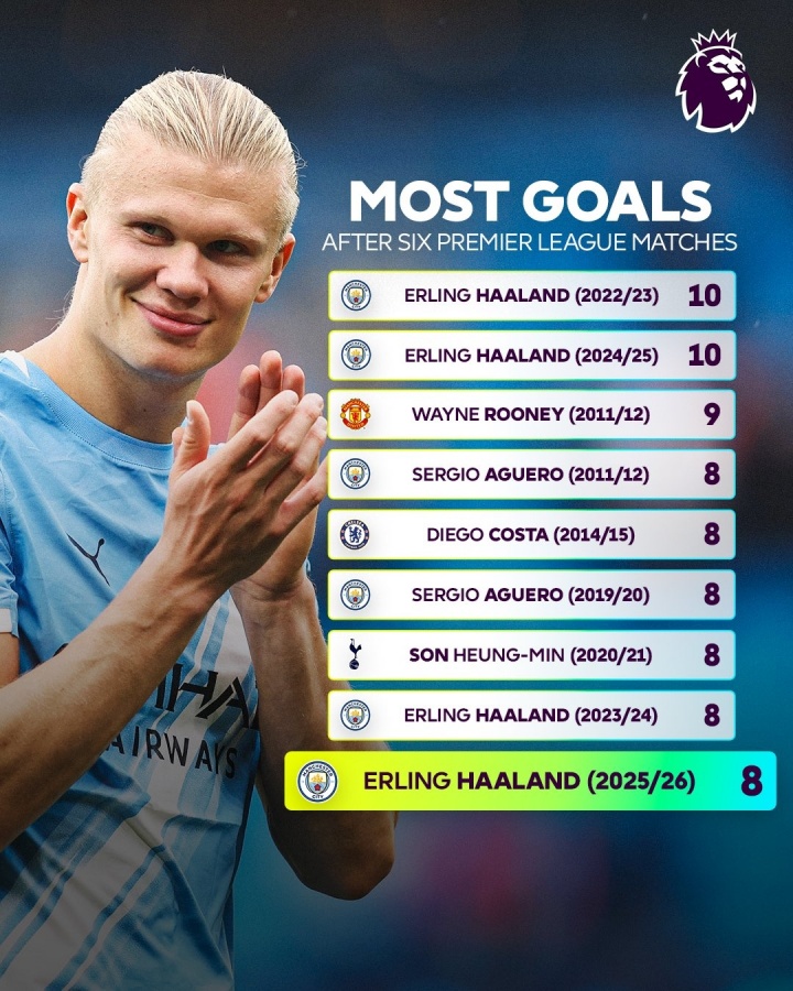 数据闪现,哈兰德本赛季前6轮攻入8个英超进球,这一数据不错排进英超单赛季前六轮弓手榜的前9。距离哈兰德我方在2022/23和2024/25赛季创下的6轮10球尚有差距。哈兰德加盟曼城以来4个赛季前六轮的进球数辞别为:10、8、10、8。