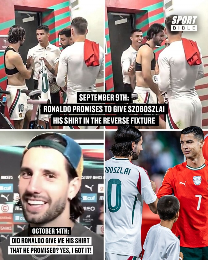 葡萄牙主场2-2战平匈牙利,索博斯洛伊赛后暗意我方已得到C罗球衣。