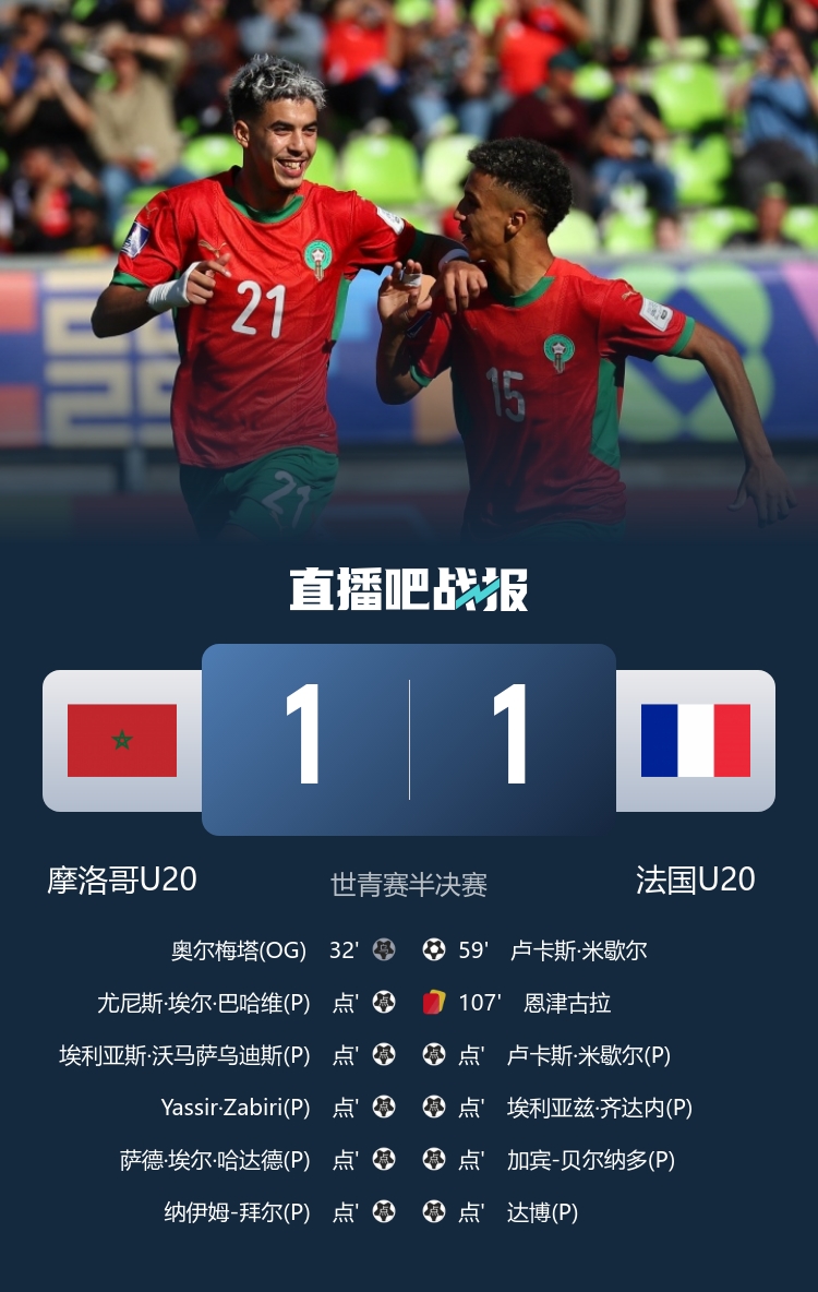 首进世青赛决赛!摩洛哥点球淘汰法国,将对阵阿根廷哥伦比亚胜者