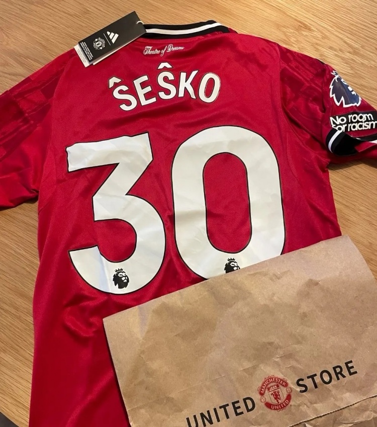 球迷Jaka在社媒上示意,我方从曼联官方在线商店购买了舍什科的30号球衣,发现舍什科姓氏中的变音标志被倒置,两个向下的箭头进取。