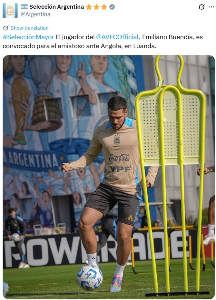 阿根廷官方:补招维拉中场布恩迪亚插足本期球队名单