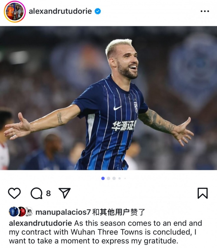 本年齿首加盟武汉三镇的罗马尼亚外助图多列,本赛季共代表武汉三镇出战26场,孝顺10个进球。他在社媒告别写谈: