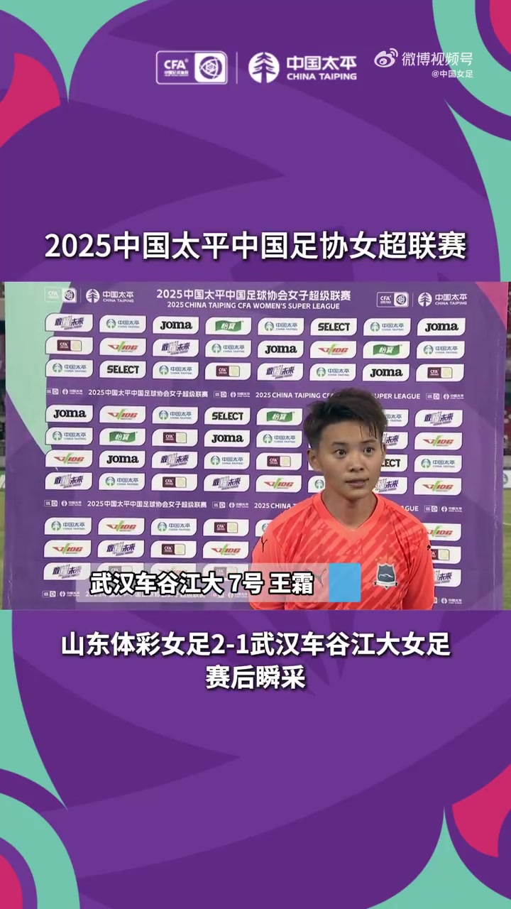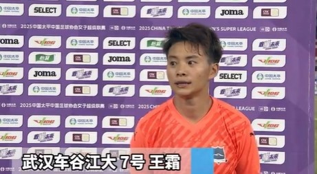 山东体彩女足25号李英华和武汉车谷江大7号王霜继承了采访。