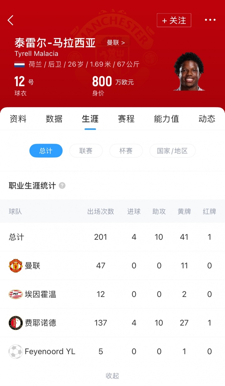 马拉西亚2022年加盟曼联,现在遵守曼联3年共出场47次,0球0助拿到11张黄牌。