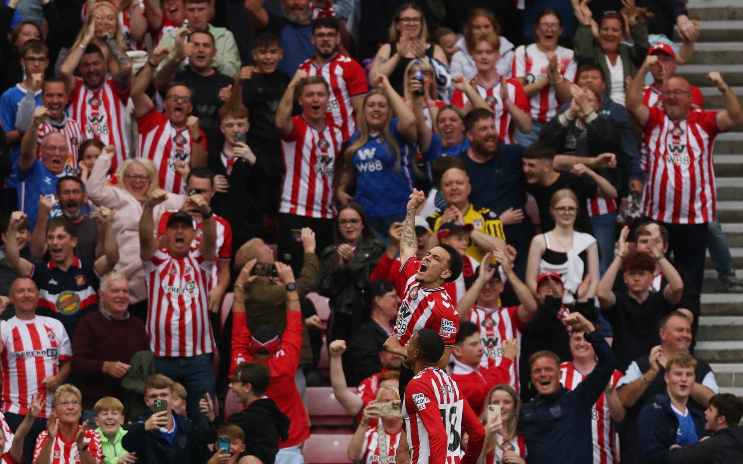 本赛季,情况似乎并未改不雅。与利兹联、伯恩利一齐顺畅的升级之路不同,桑德兰上赛季在英冠(二级赛事)仅积 76 分,比两队少 24 分(两队均为 100 分),差距十分明显;两轮附加赛更是凭借补时破门才 “荣幸” 升级。因此,多数东谈主并不看好这支球队 —— 尽管他们有老牌球会的底蕴,但彼一时,谁还会纠结那些 “老故事” 呢?