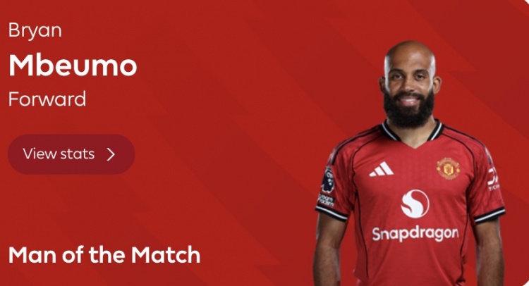 💪连续力争!姆伯莫当选为曼联客战丛林全场比赛最好球员