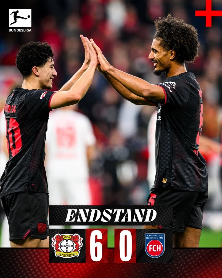 11月09日讯 德甲第10轮,勒沃库森主场6-0大捷海登海姆,名次高潮到积分榜第4。