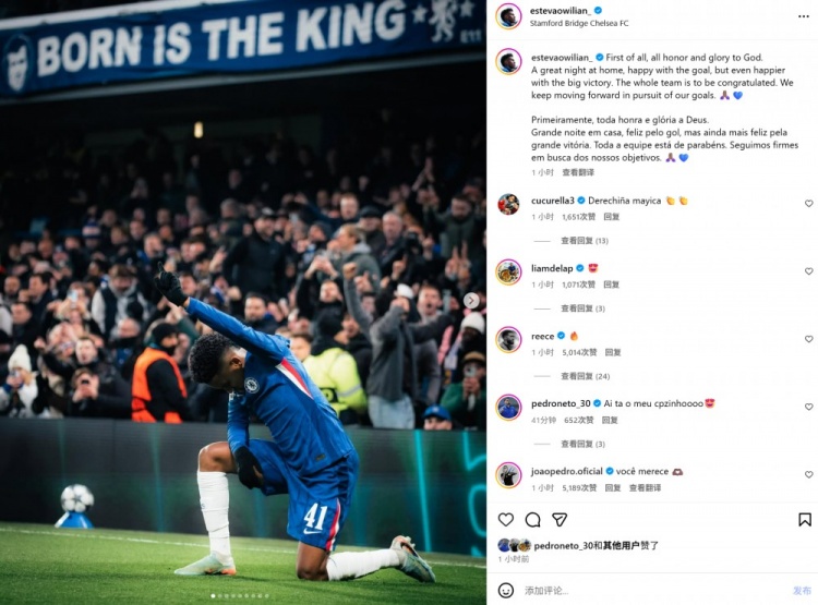 本场比赛埃斯特旺打进精彩进球,赛后他也在社媒晒出庆祝进球相片,配文写谈:“最初,一切荣耀归于天主。在主场渡过了一个好意思好的夜晚,为进球感到欢欣,但更为这场大捷感到欢娱。咱们整个团队的进展皆配得上赞誉。咱们将不竭坚强地追求咱们的经营。 🙏🏽💙”